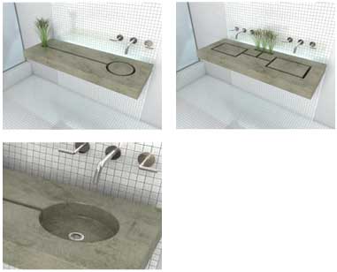 Formed of natural concrete and inspired by the Japanese Zen gardens, this clever sink diverts some of the excess water to feed the plants growing in the nearby trough. The result is timeless.